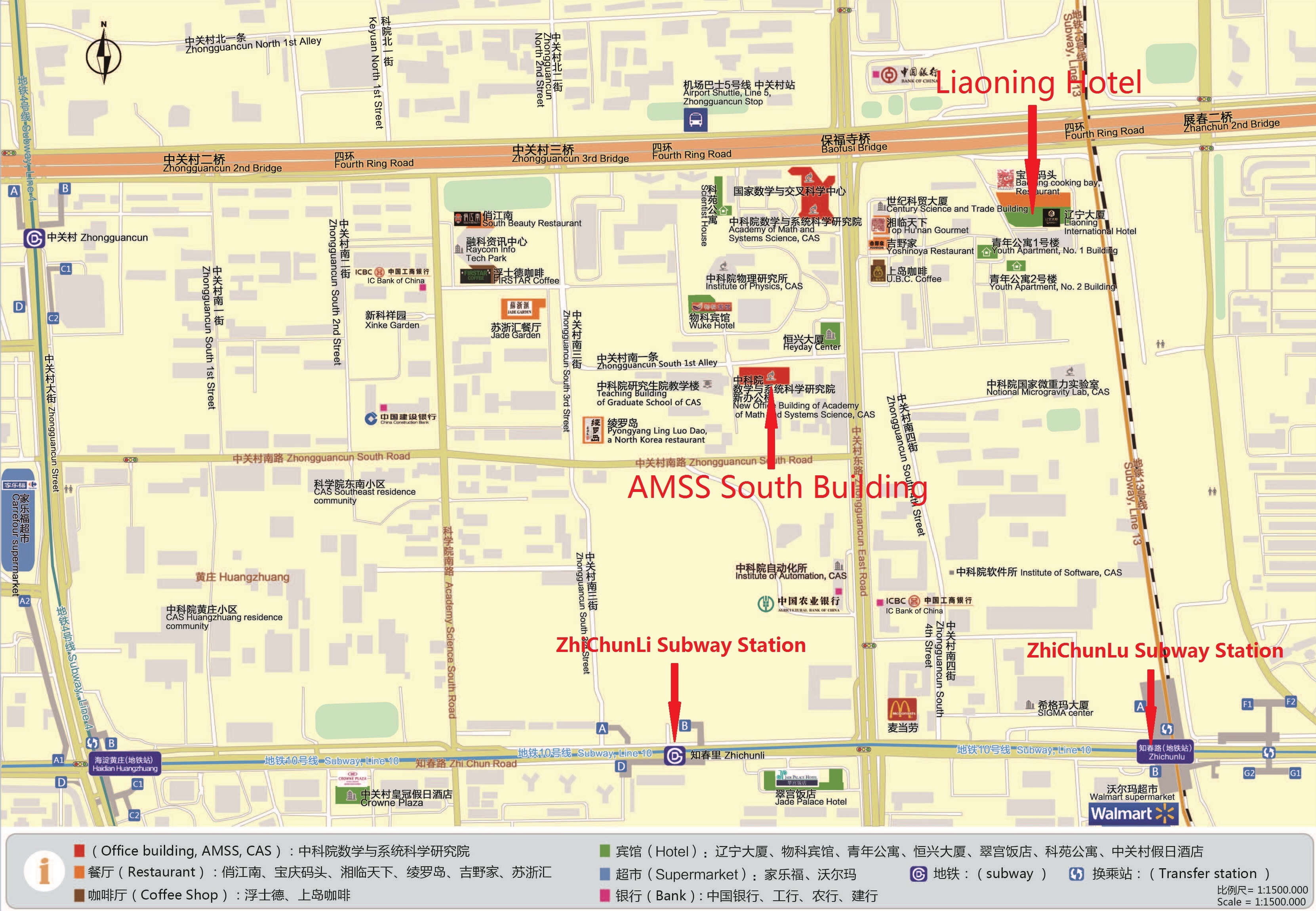 Taking subway line 10 to Zhichunlu (知春路) or Zhichunli (知春里) Station which costs about 30 Yuan from airport or 5 Yuan from train station.