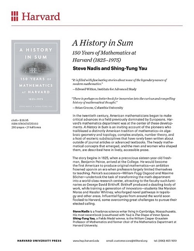 150 Years of Mathematics at Harvard ( 1825 –.In the twentieth century , American mathematicians began to make critical advances in a field previously dominated by Europeans . Harvard ’ s mathematics department was at the center of these developments .Steve Nadis is a freelance science writer li...
